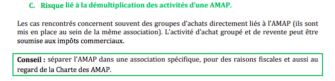 - L’affirmation du caractère non-économique des AMAP, par le respect scrupuleux de leur charte, et ainsi la limitation des risques encourus en cas de contrôles par un organisme de répression des fraudes. (voir fiche du MIRAMAP)