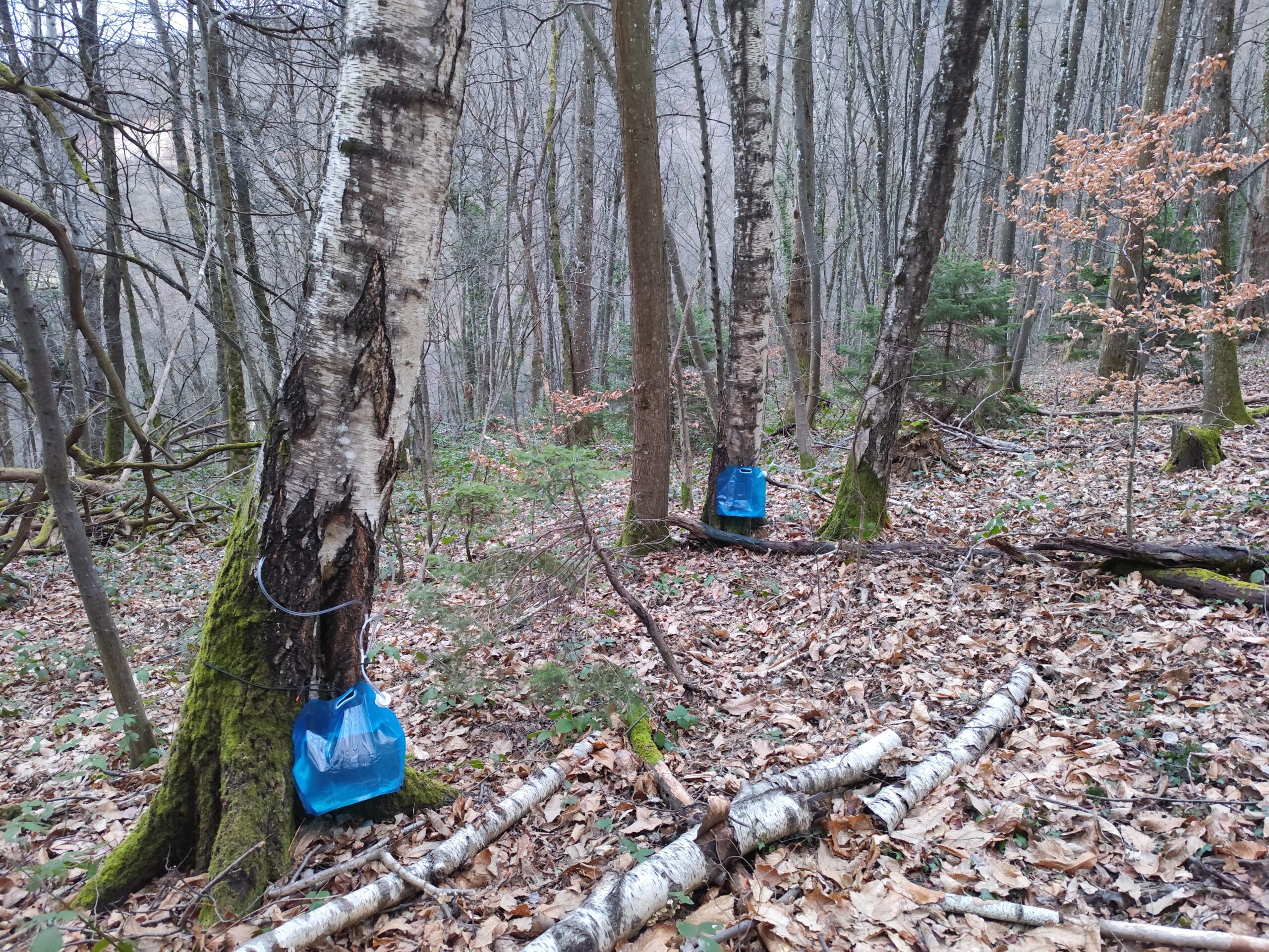 Aux alentours de mars, lorsque dame nature le décide, je récolte de manière artisanale cette eau végétale en préservant les arbres producteurs par une rotation des prélèvements.